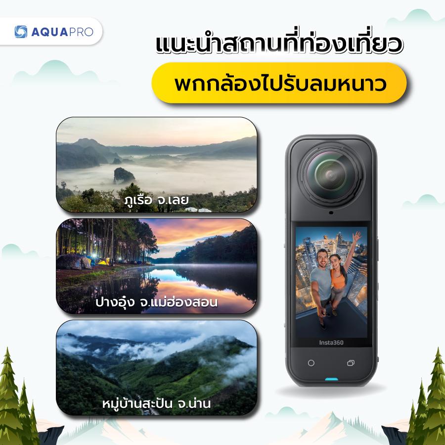 ฤดูที่น่าเที่ยวที่สุดของไทย คงหนีไม่พ้น “ฤดูหนาว” โดยเฉพาะสำหรับสายท่องเที่ยวและสายคอนเทนต์ ที่ต้องการบันทึกภาพถ่ายหรือวิดีโอเพื่อเป็นความทรงจำ ซึ่งกล้อง Insta360X5 ตัวนี้สามารถช่วยสร้างโมเมนต์พิเศษให้กับคุณได้! หัวข้อนี้ AquaPro จะมาแนะนำ สถานที่ท่องเที่ยวหน้าหนาวปีนี้ ที่น่าพกกล้อง Insta360X5 ไปร่วมทริปด้วย … คลิกอ่านต่อ